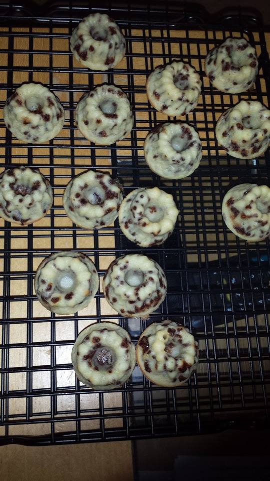 Zutaten: Für 18 Gugl: 40 g Lätta 20 g Puderzucker 1Pk Vanillinzucker 1 Ei 2 tl Saure Sahne 30 g Sahne 70 g Mehl 30 g Schokoladenstreusel eventuell etwas Süßstoff oder Stevia. Vorbereitung: Ofen auf 180 Grad Umluft vorheizen, das ist ganz wichtig. Zudem die Vertiefungen der Form ausbuttern.