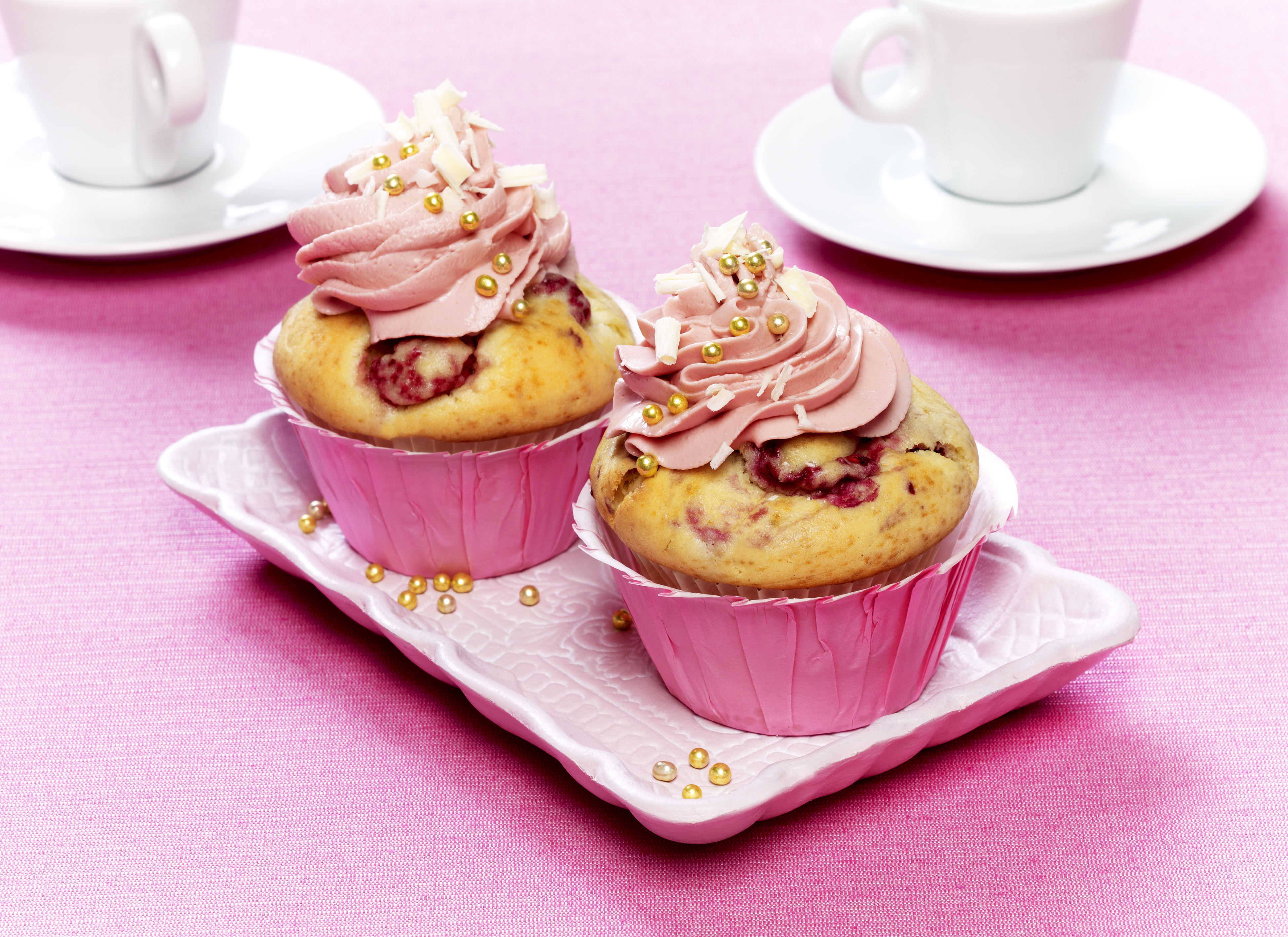 2. Himbeeren vorsichtig unter den Teig ziehen, in eine mit Papierförmchen ausgelegte Muffinform (12 Mulden) füllen und im vorgeheizten Backofen bei 180 °C (Gas: Stufe 3, Umluft 160 °C) ca. 25-30 Minuten goldbraun backen. Muffins auf einem Kuchengitter auskühlen lassen.