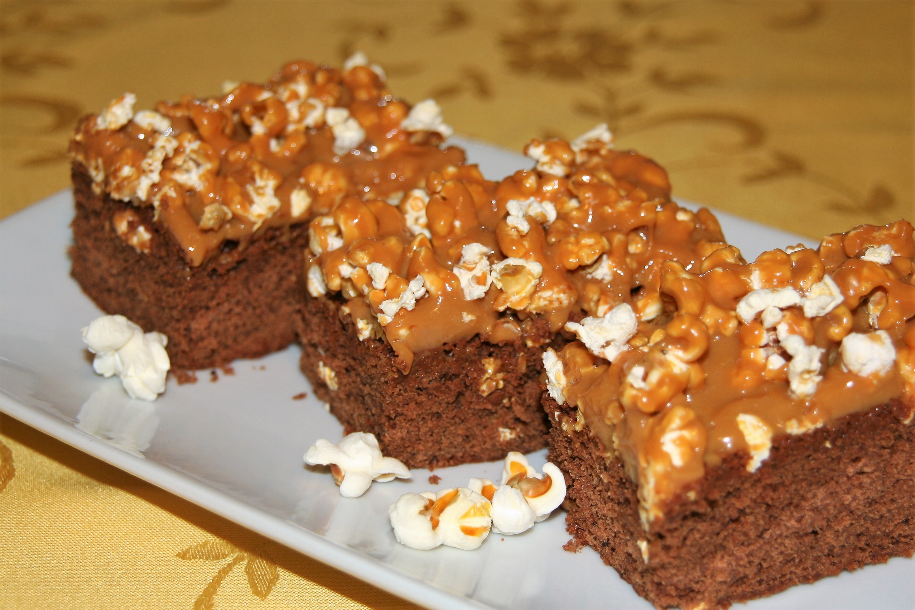 Schokoladenkuchen mit Caramel-Popcorn-Topping