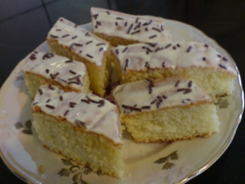 Alle Zutaten verrühren und auf ein Backblech geben. Entweder so lassen oder mit Obst bestücken, villeicht auch Smarties wie man möchte.