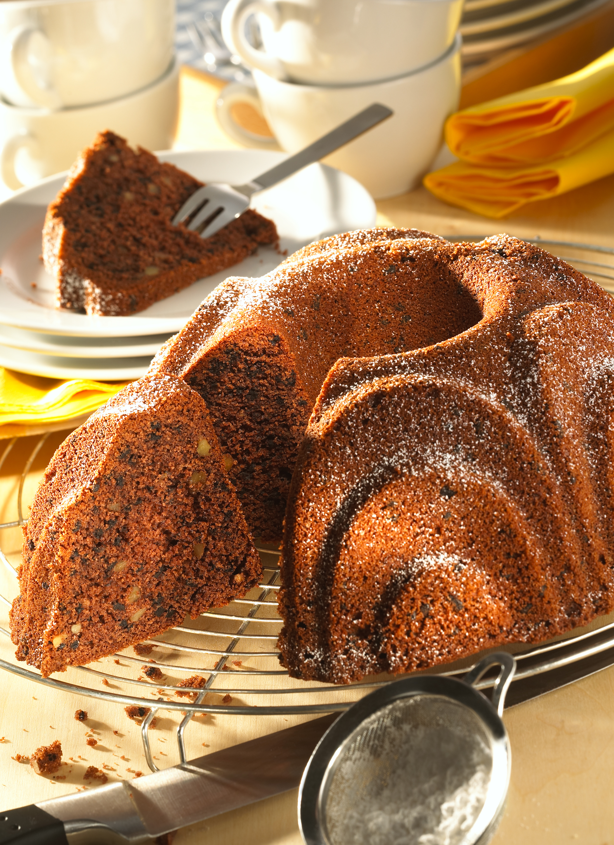Kuchen nach Wunsch mit Puderzucker bestäubt servieren.