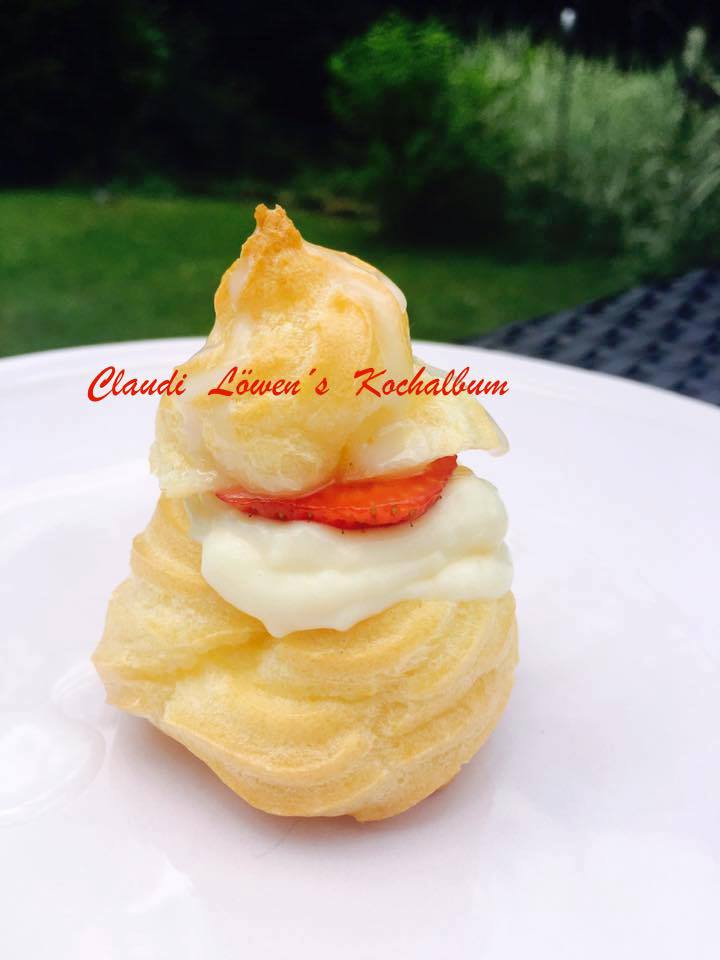 Windbeutel waagerecht aufschneiden, entweder mit einem super scharfem Messer oder einer Schere.