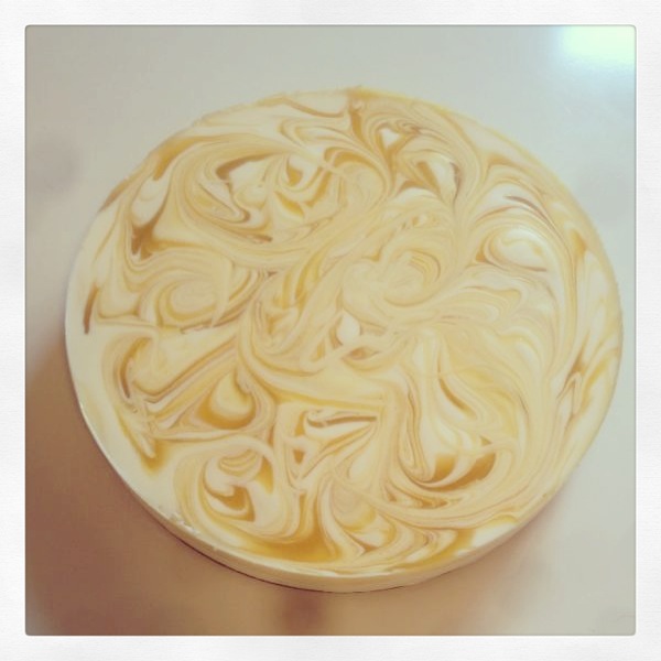 In der Zwischenzeit 300 g Sahne steif schlagen und unter die Joghurtmasse heben. Erst die Hälfte der Creme, dann die Hälfte des Pürees auf dem Tortenboden verteilen. Joghurt und Püreemasse spiralförmig mit einer Gabel durchziehen, so wie bei einem Gugelhupf. Der Kuchen muss jetzt ca. fünf Stunden kalt stehen. Fertig.