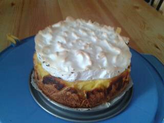 Herausnehmen und das Baiser (die Eiweiß mit dem Zucker steif schlagen) auf die vorgebackene Quarkmasse streichen und ca. 10 Minuten weiterbacken!